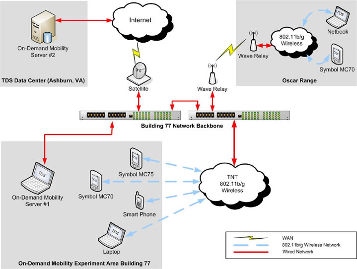The On-Demand Mobility experiment’s objective was to demonstrate the benefits of adding specially designed middleware to existing COTS systems and components to greatly increase levels of performance (bandwidth utilization improvements) to address ever increasing demands and requirements of the WarFighter and other mission-critical programs. The demonstration showed how On-Demand Mobility middleware addresses common COTS deficiencies and provides an architectural processing solution that eliminates the gap between COTS software and DoD performance requirements. On-Demand Mobility enables WarFighter and other Homeland Defense/First Responder systems to incorporate a far greater number of existing and future mission-critical systems into currently installed COTS hardware components.